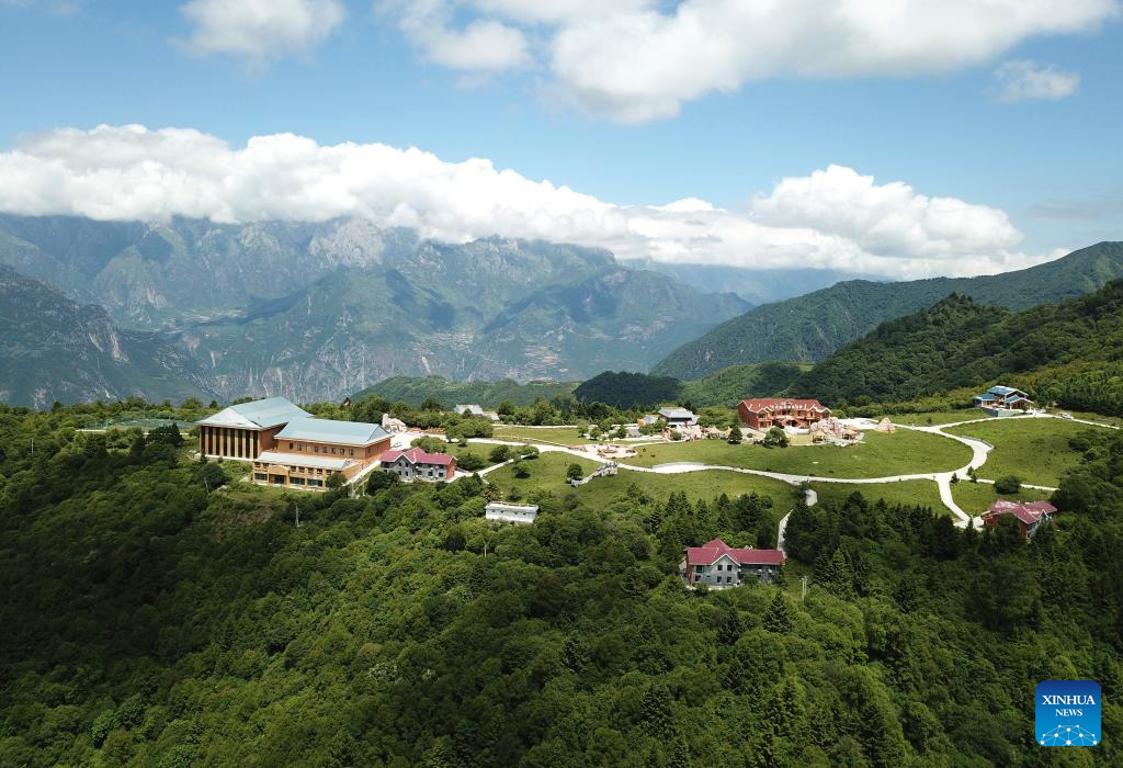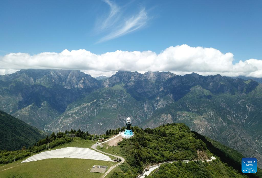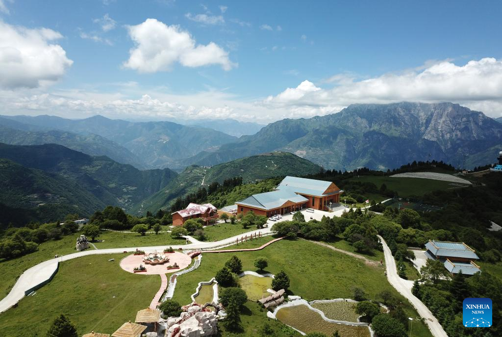 This aerial drone photo taken on July 12, 2025 shows the view of Lagashan Mountain in Zhouqu County, Gannan Tibetan Autonomous Prefecture, northwest China's Gansu Province. (Xinhua/Chen Bin)