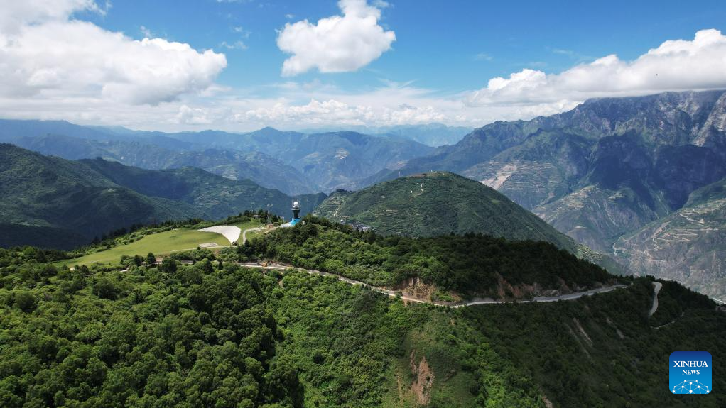 This aerial drone photo taken on July 12, 2025 shows a driveway in Zhouqu County, Gannan Tibetan Autonomous Prefecture, northwest China's Gansu Province. (Xinhua/Chen Bin)