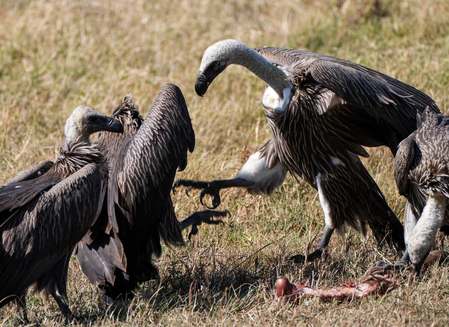 Vultures scramble for food at Kenya's Masai Mara National Reserve.