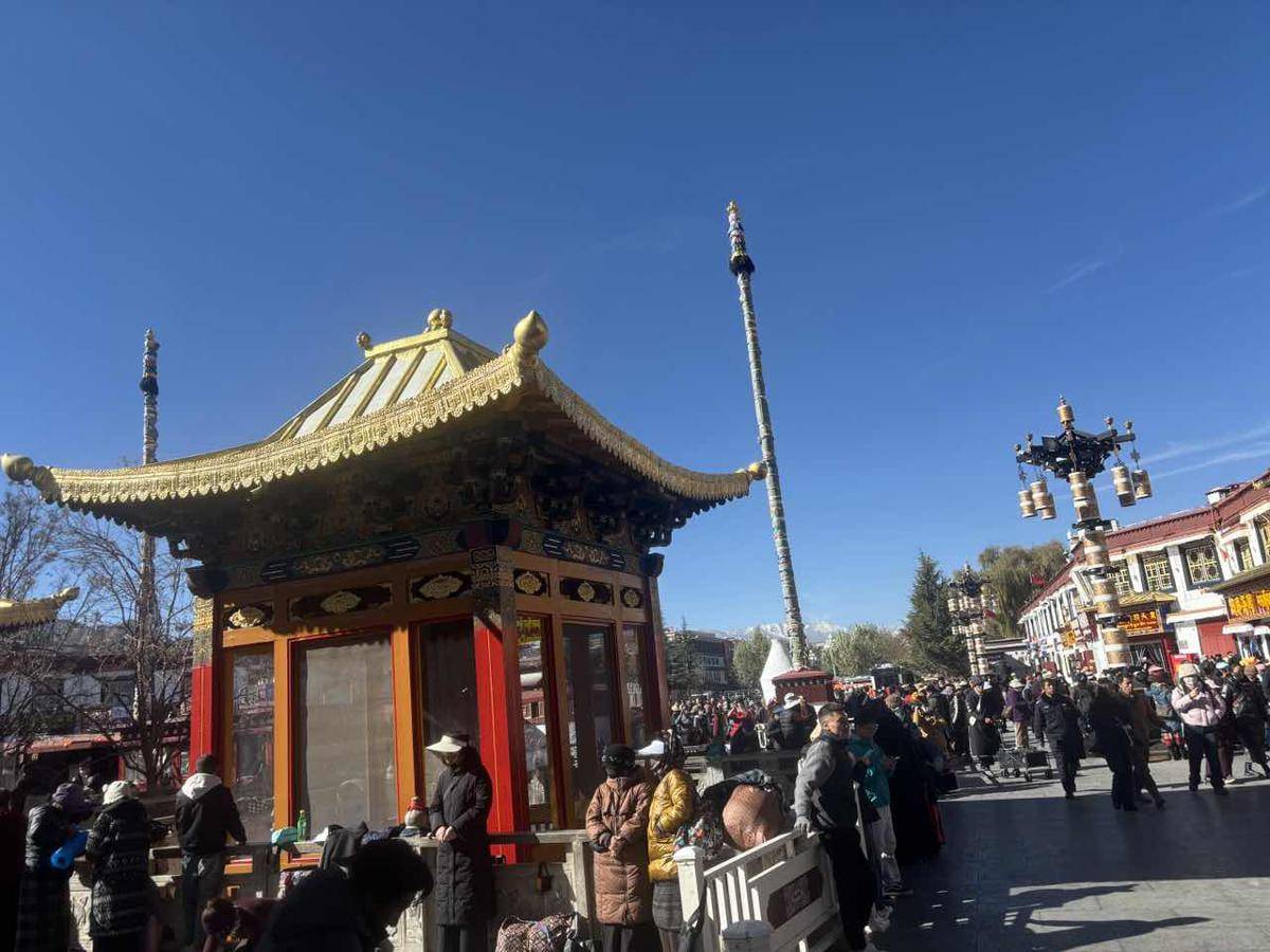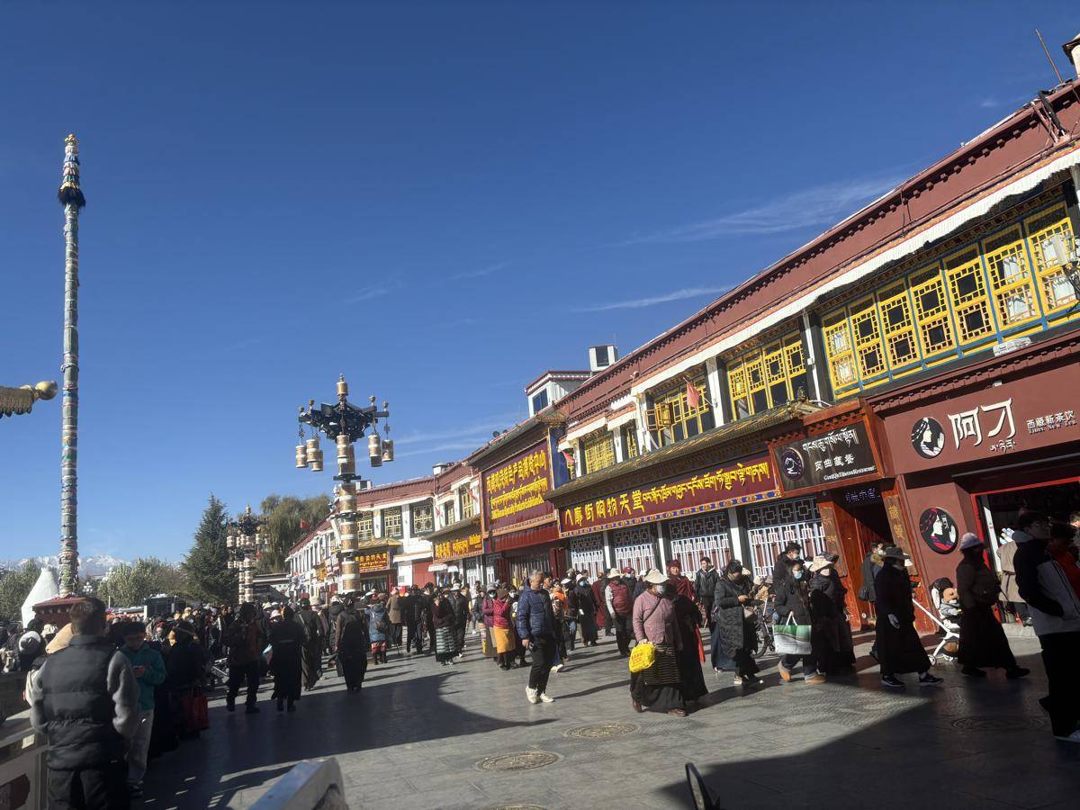 Tourists visit the ancient Barkhor Street in Lhasa, capital of the Xizang autonomous region. [Photo by Palden Nyima/chinadaily.com.cn]