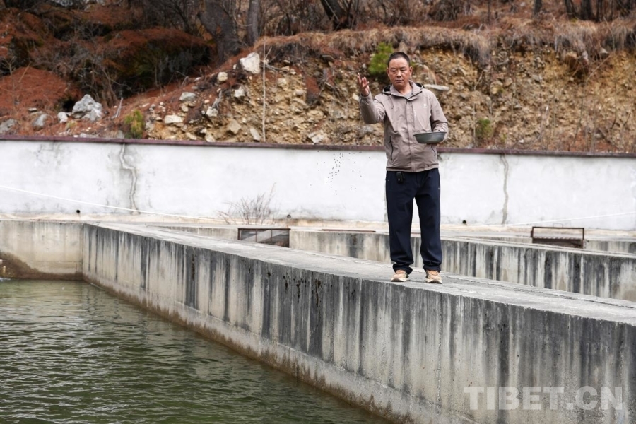 More than ten kilometers away, in Xiasima Community, the Yadong River runs through the area, which provides the natural habitat for the Yadong salmon, a Class-II protected wild animal in the Xizang Autonomous Region. Today, in the aquaculture ponds of the local salmon farming cooperative, schools of Yadong salmon swim freely in the water. These ponds of running water have truly become "waters of prosperity" boosting local incomes, thanks to the hard work of Li Xijun and other cooperative members.