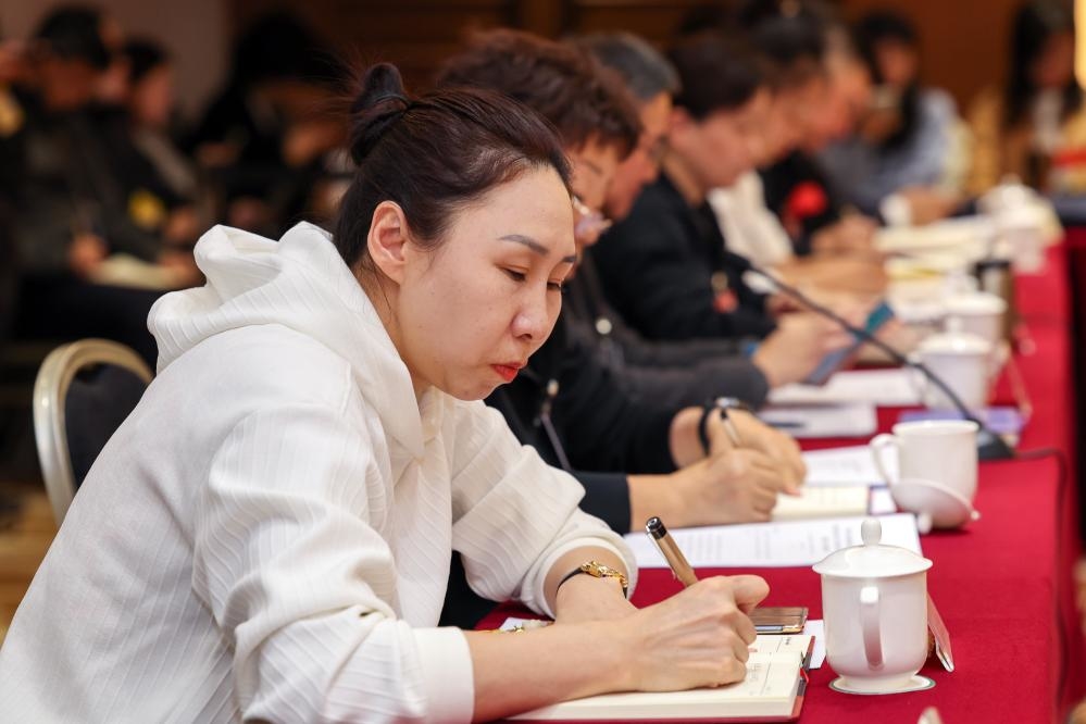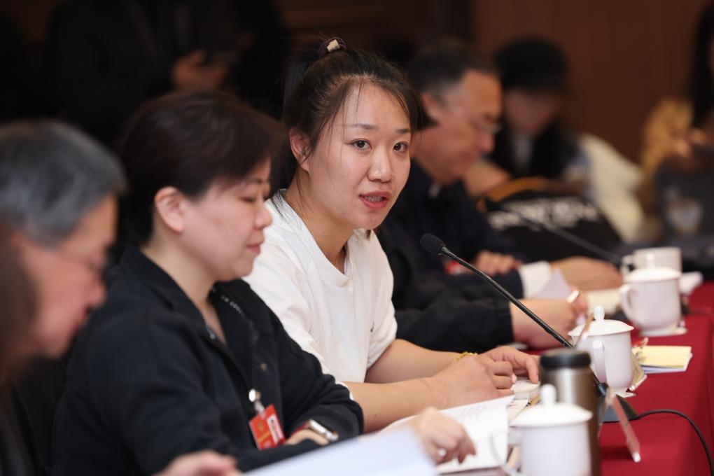 National political advisor Miao Lijie takes notes at a meeting of national political advisors from sports sector at the third session of the 14th National Committee of the Chinese People's Political Consultative Conference (CPPCC) in Beijing, capital of China, March 5, 2025. (Xinhua/Yin Gang)